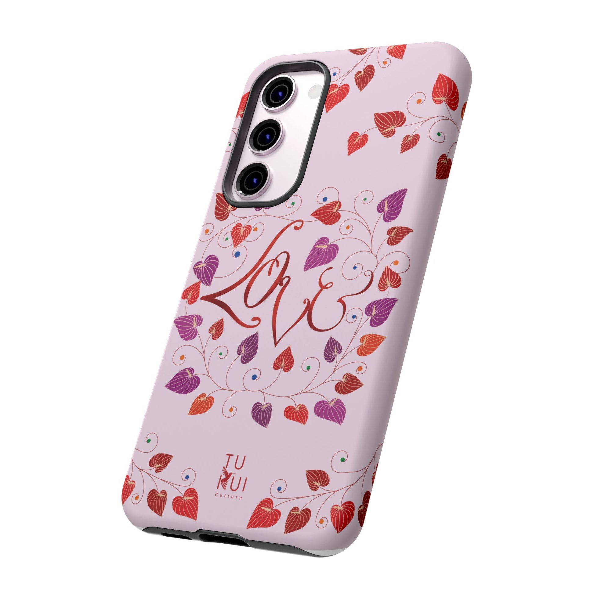 This phone case with an illustration of red flowers and a lettering that says 'Love' exudes a romantic and vibrant vibe. It is perfect for someone looking to accessorize their phone with a touch of love and nature. Ideal for those celebrating Valentine's Day or anniversary.