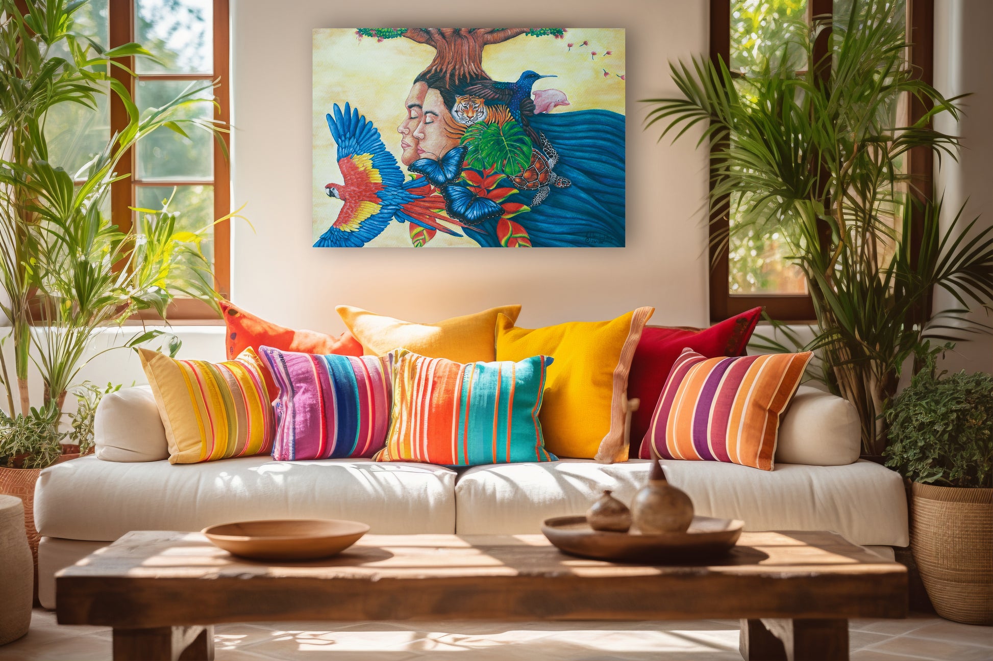 We must return to a natural thought, that is why the roots of the tree connect with the mind of man and woman, one next to the other in balance, representing the masculine and feminine of the universe. Their features are indigenous, since ancestrally they are the guardians of the wisdom about the meaning and importance of the connection with nature.